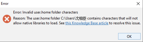 Q: When I launch Xodo PDF Studio, it shows error message “Invalid user home folder characters”. How can I resolve this issue?